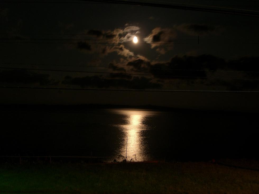 話をしている最中に海面が綺麗だなぁって思ったら月が雲から出てきていました